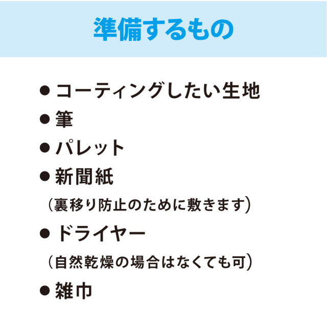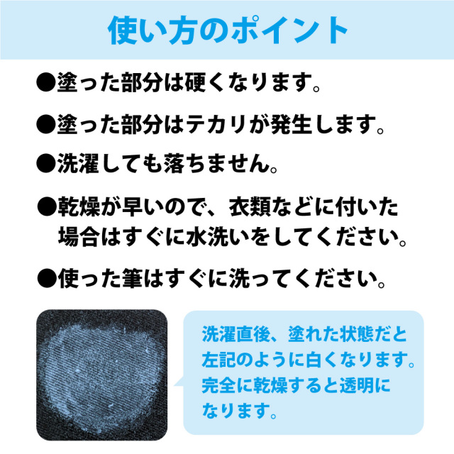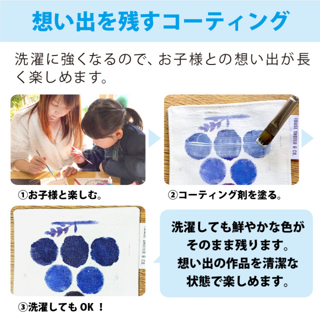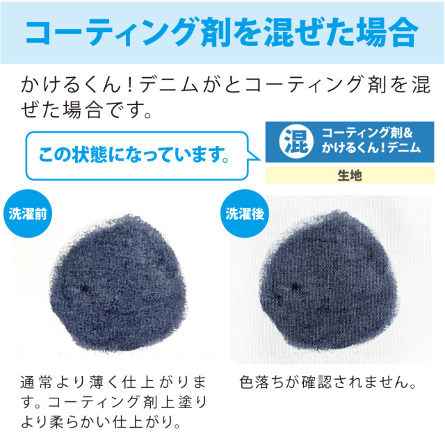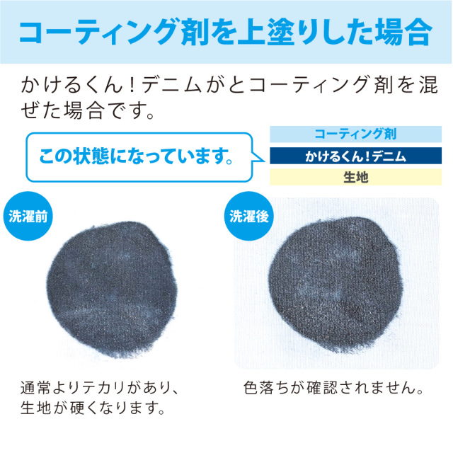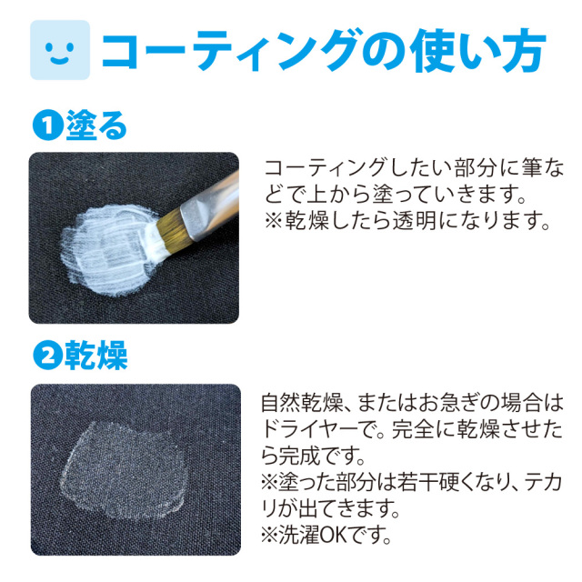 布に塗ったかけるくんの上にコーティング剤を塗ると、洗濯での色落ち防止になります。