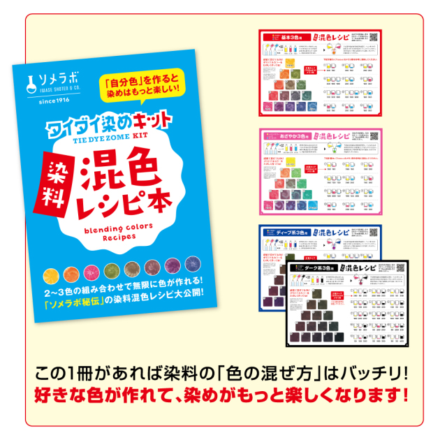 【染料・助剤は付属しません。】タイダイ染めがカンタンにできる染色キットの説明書&混色レシピ本